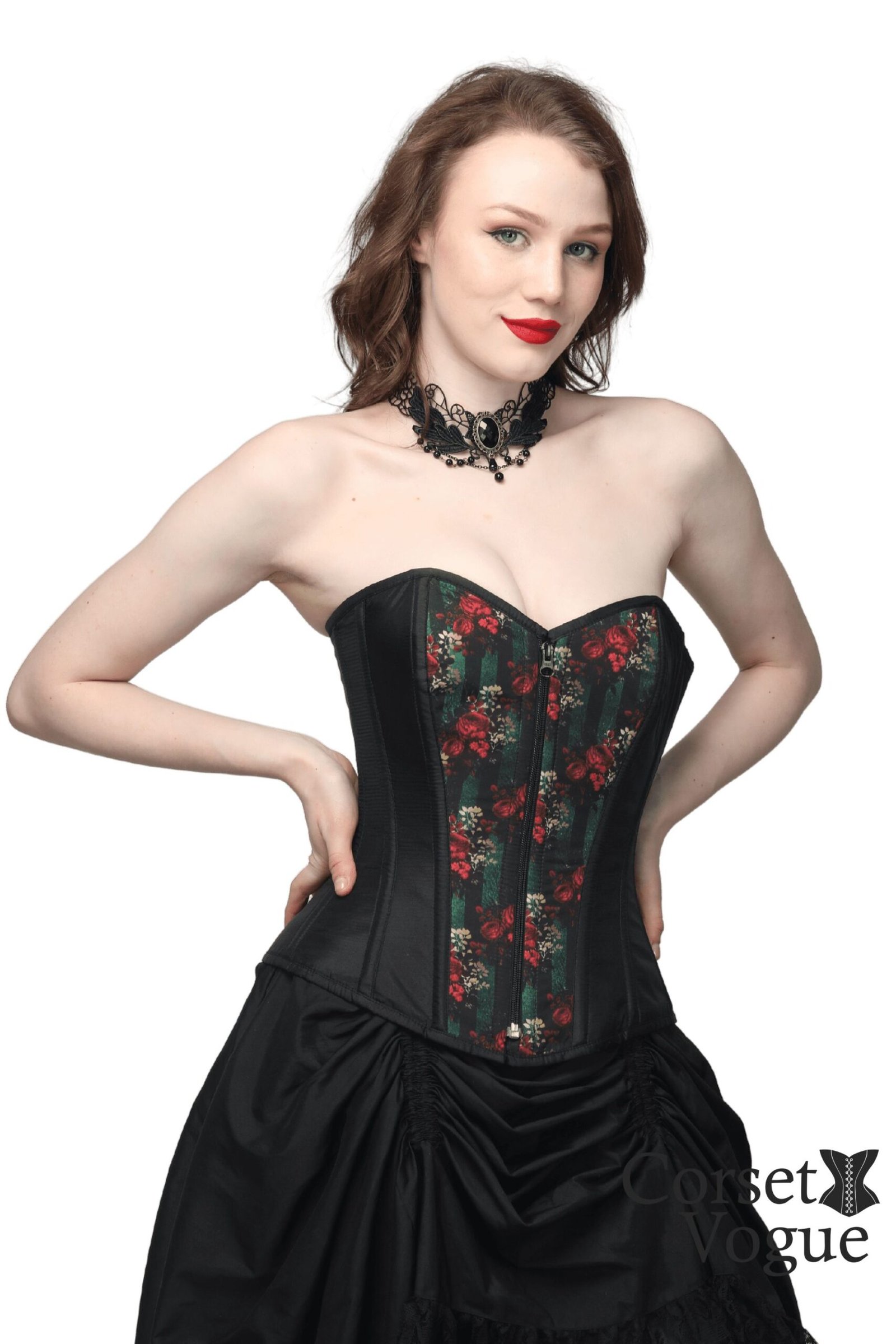 Elevate your style with our best corset for women, the Printed Gothic Over Bust Corset. The black floral print exudes gothic charm while its waist-shaping abilities, metal boning, posture correction, and body sculpting features make it a must-have. Make a bold statement in this captivating piece.